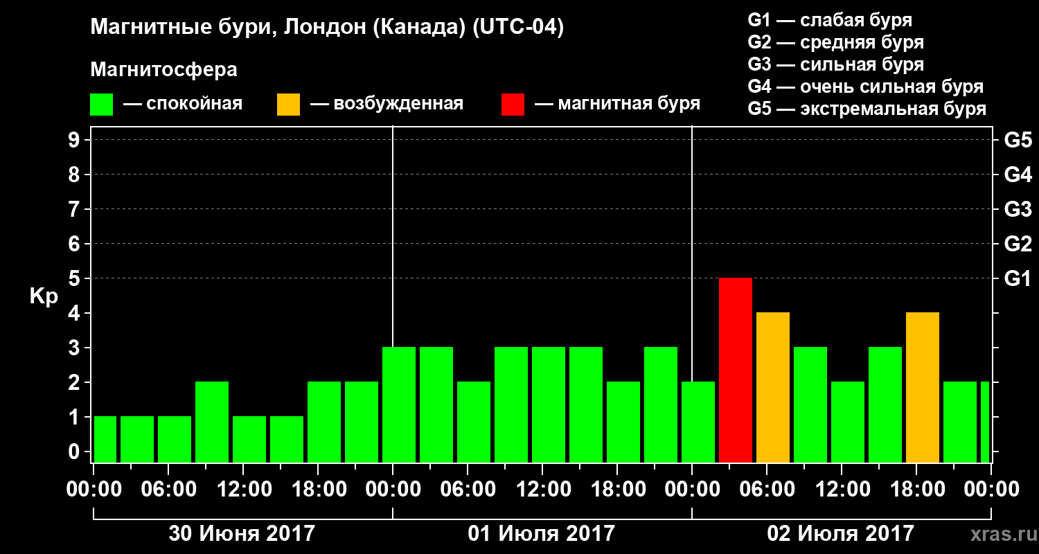 Магнитные бури Лондоне (Канада) 2 июля 2017 года