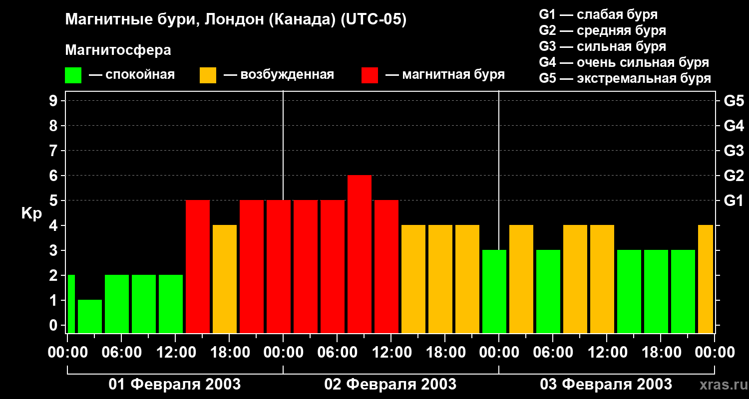 Магнитные бури Лондоне (Канада) 3 февраля 2003 года