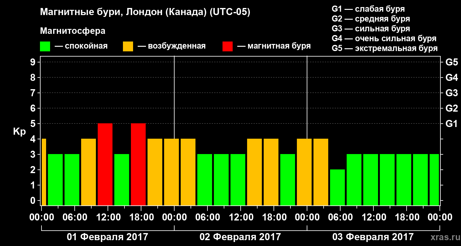 Магнитные бури Лондоне (Канада) 3 февраля 2017 года