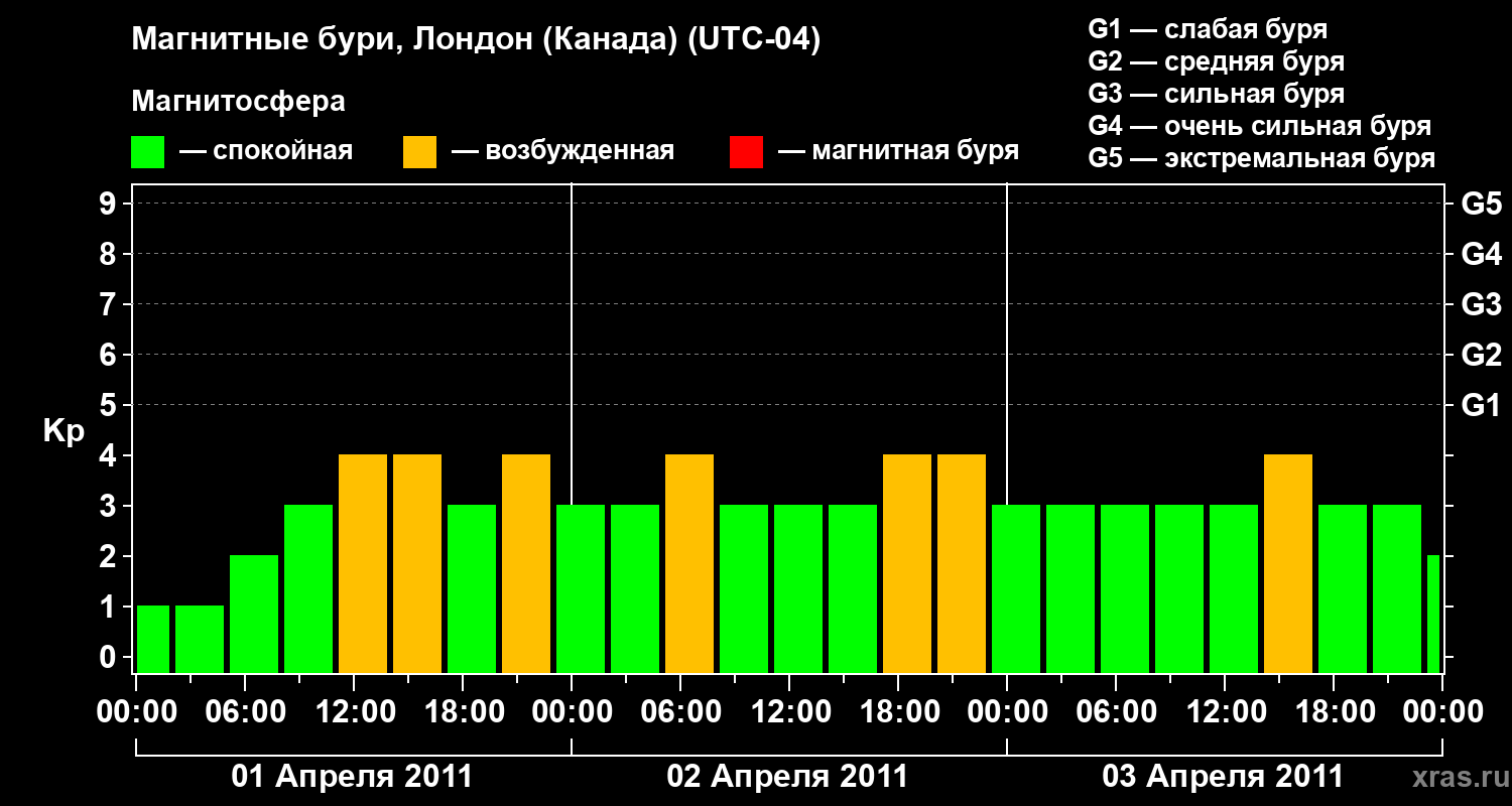 Магнитные бури Лондоне (Канада) 3 апреля 2011 года