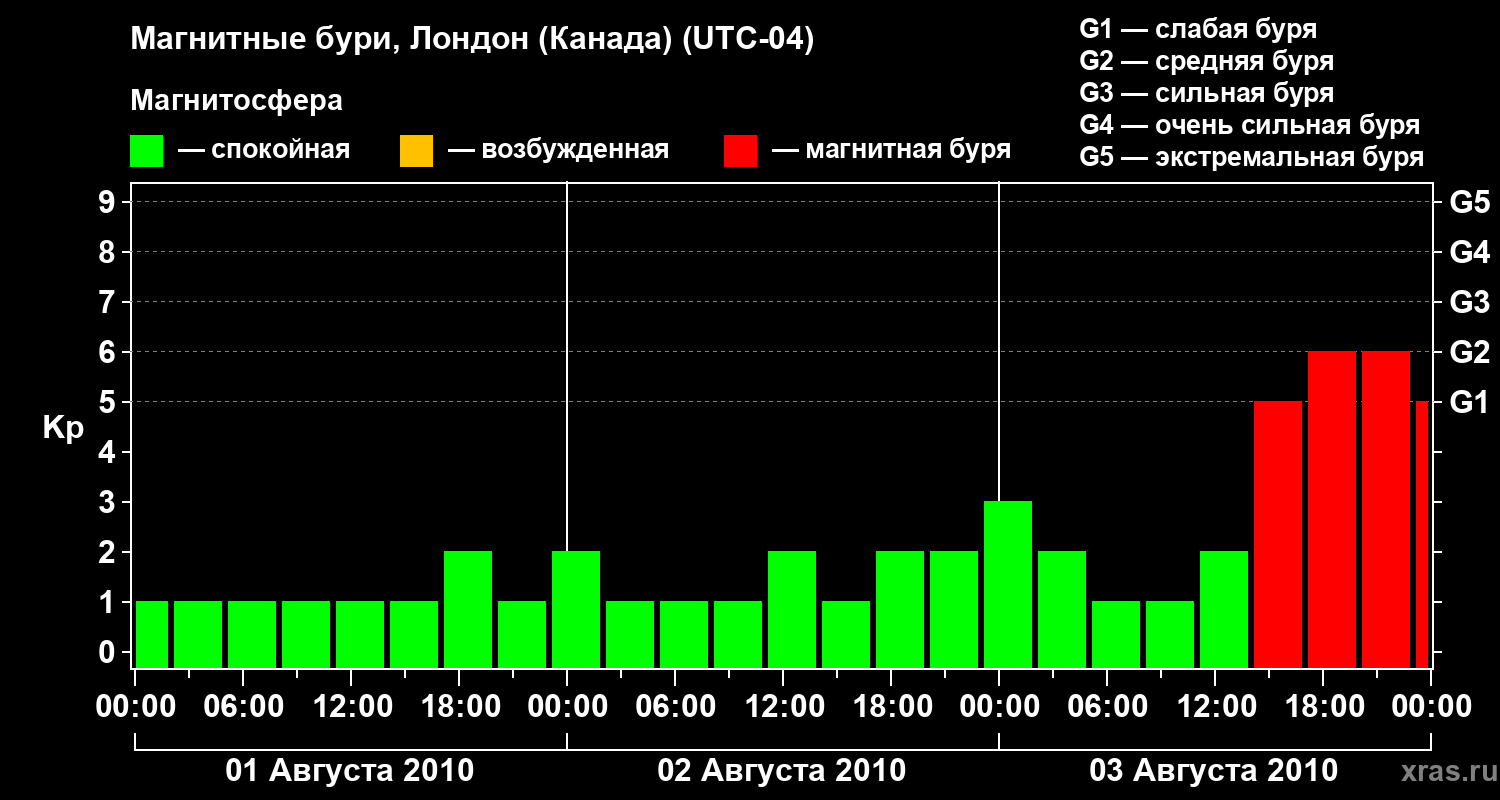 Магнитные бури Лондоне (Канада) 3 августа 2010 года