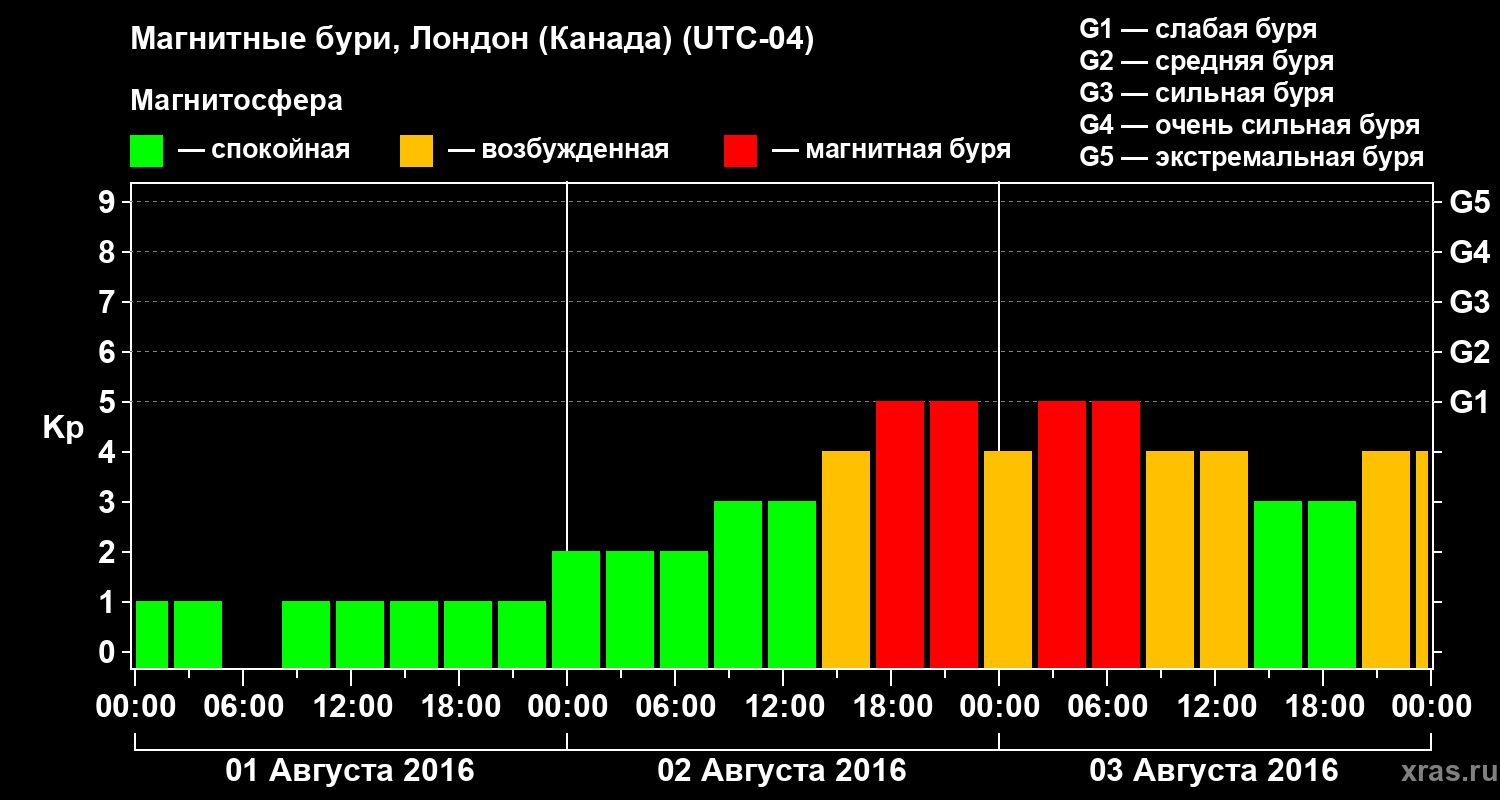 Магнитные бури Лондоне (Канада) 3 августа 2016 года