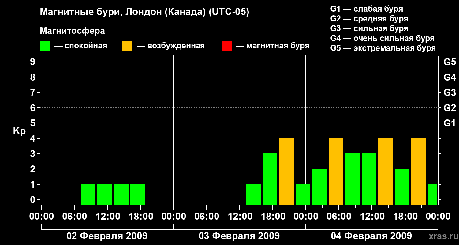 Магнитные бури Лондоне (Канада) 4 февраля 2009 года