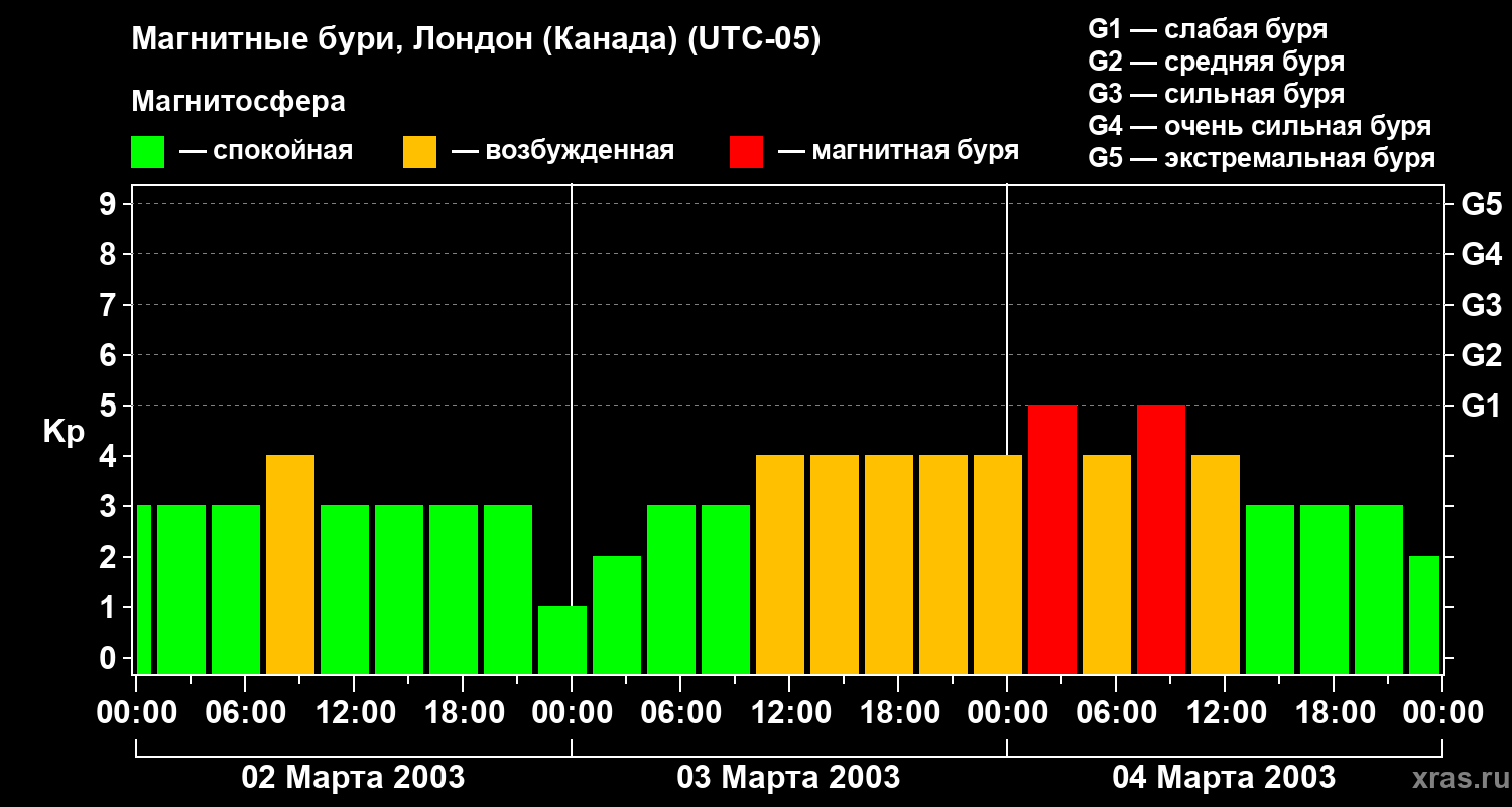 Магнитные бури Лондоне (Канада) — 4 марта 2003 года