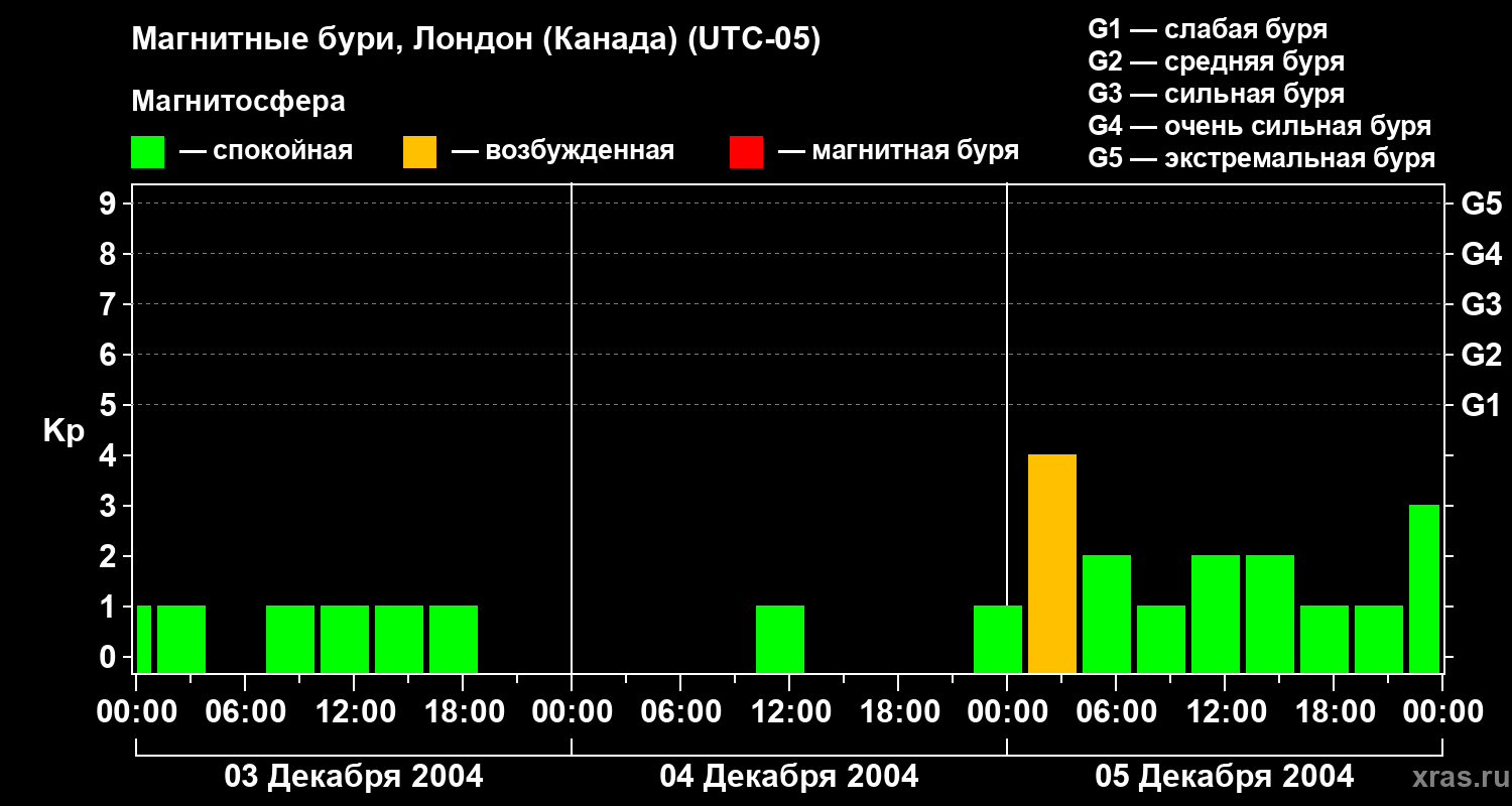 Магнитные бури Лондоне (Канада) — 5 декабря 2004 года
