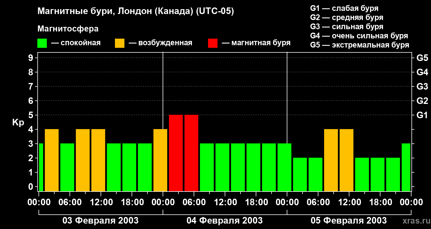 Магнитные бури Лондоне (Канада) 5 февраля 2003 года