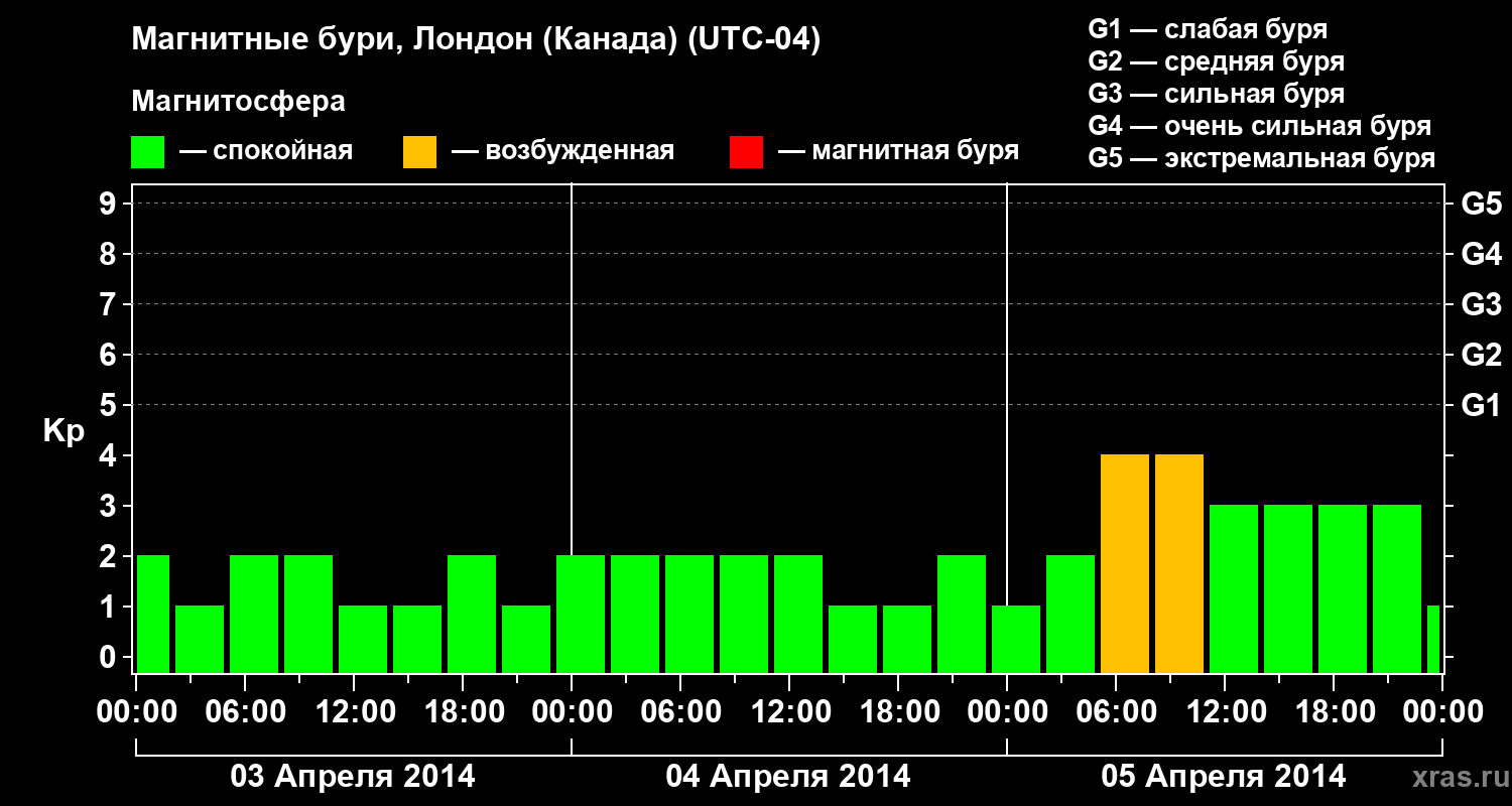 Магнитные бури Лондоне (Канада) 5 апреля 2014 года
