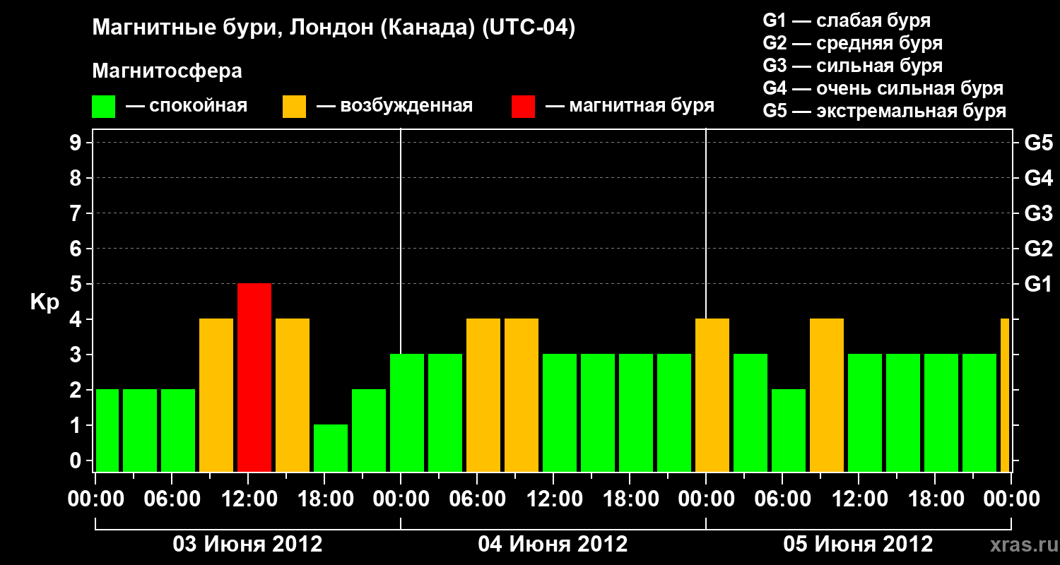 Магнитные бури Лондоне (Канада) 5 июня 2012 года