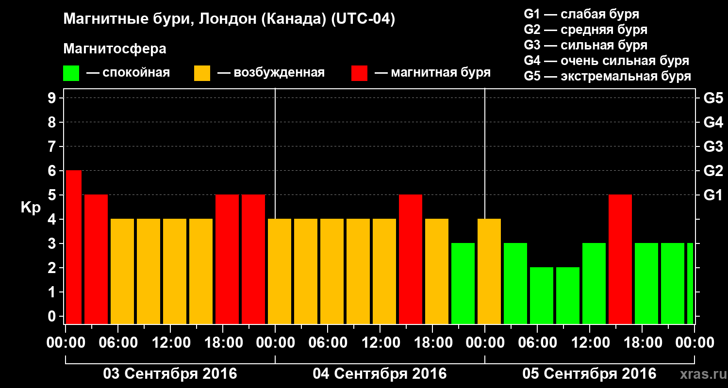 Магнитные бури Лондоне (Канада) в сентябре 2016 года