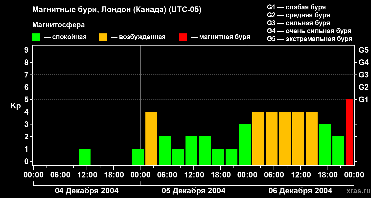 Магнитные бури Лондоне (Канада) в декабре 2004 года