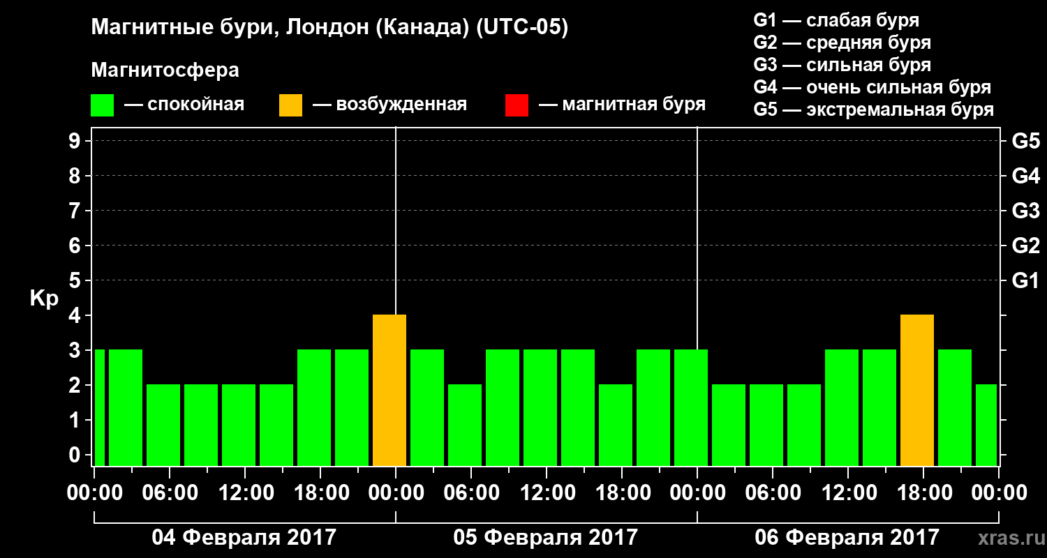 Магнитные бури Лондоне (Канада) 6 февраля 2017 года