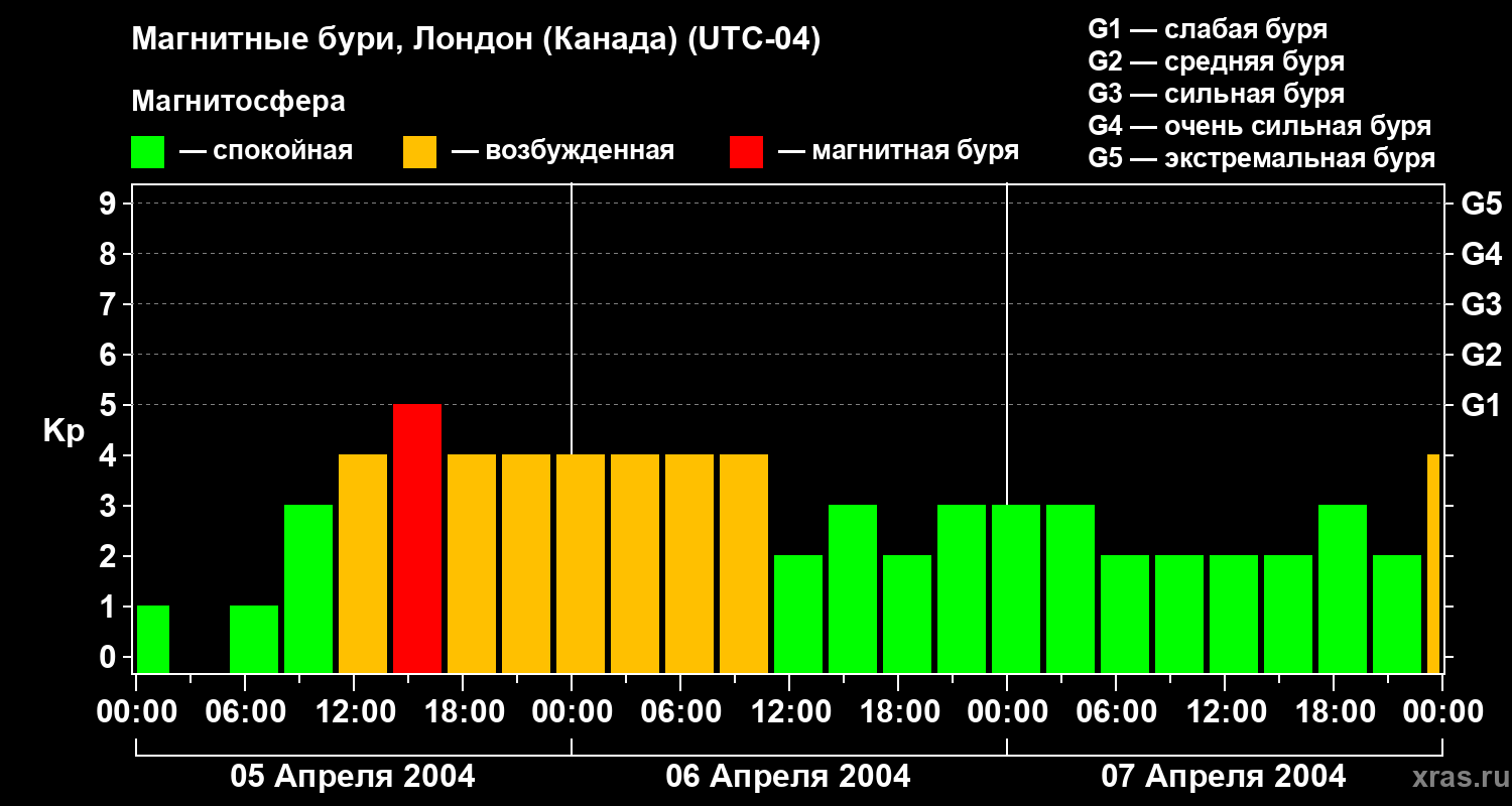 Магнитные бури Лондоне (Канада) в апреле 2004 года