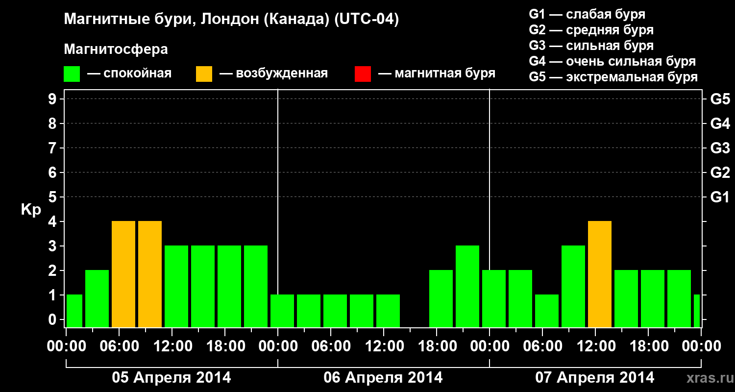 Магнитные бури Лондоне (Канада) в апреле 2014 года