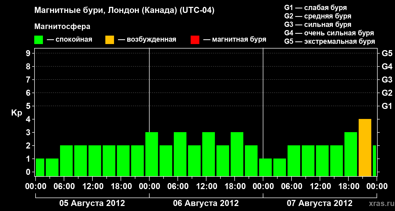 Магнитные бури Лондоне (Канада) 7 августа 2012 года