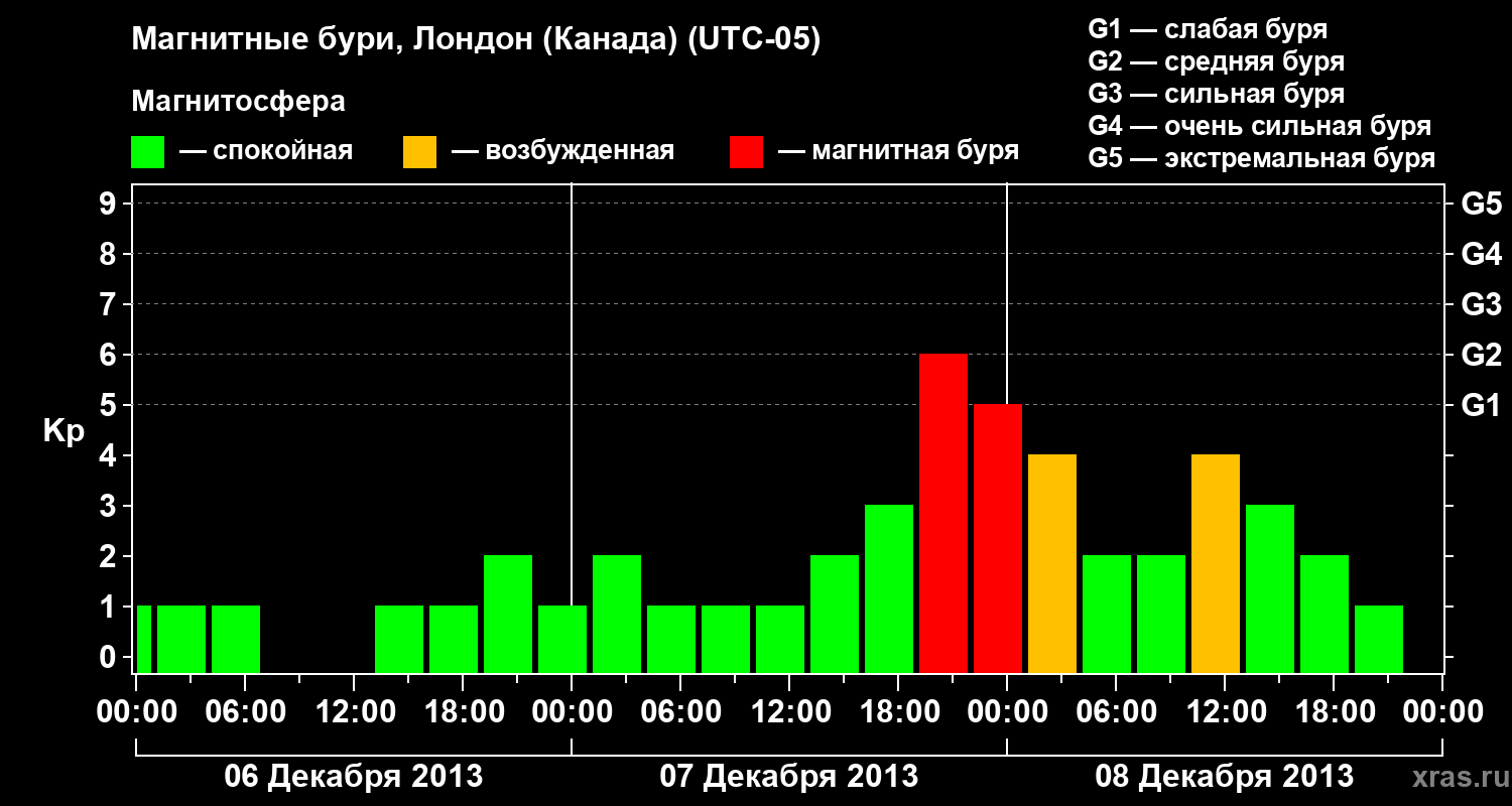 Магнитные бури Лондоне (Канада) 8 декабря 2013 года