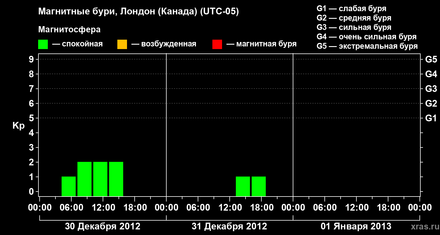 Магнитные бури Лондоне (Канада) 1 января 2013 года