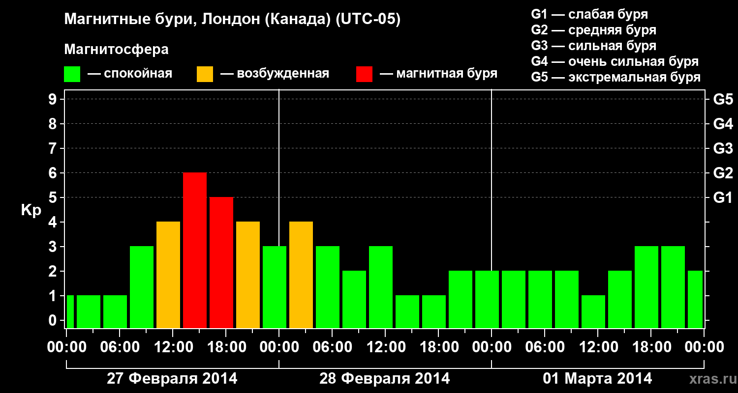 Магнитные бури Лондоне (Канада) 1 марта 2014 года