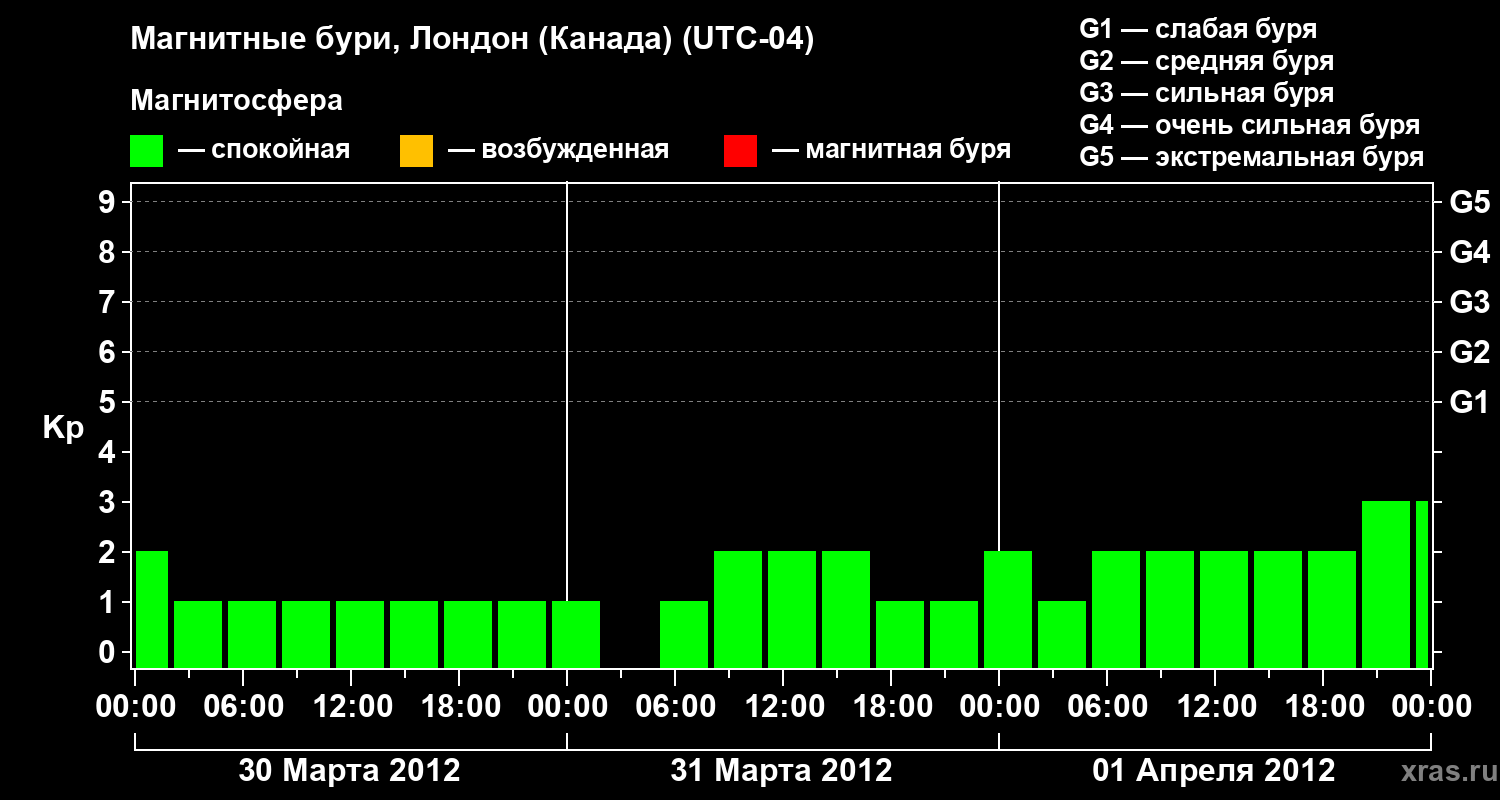 Магнитные бури Лондоне (Канада) 1 апреля 2012 года