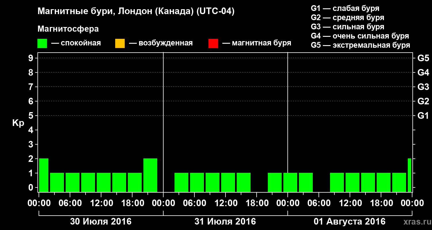 Магнитные бури Лондоне (Канада) 1 августа 2016 года