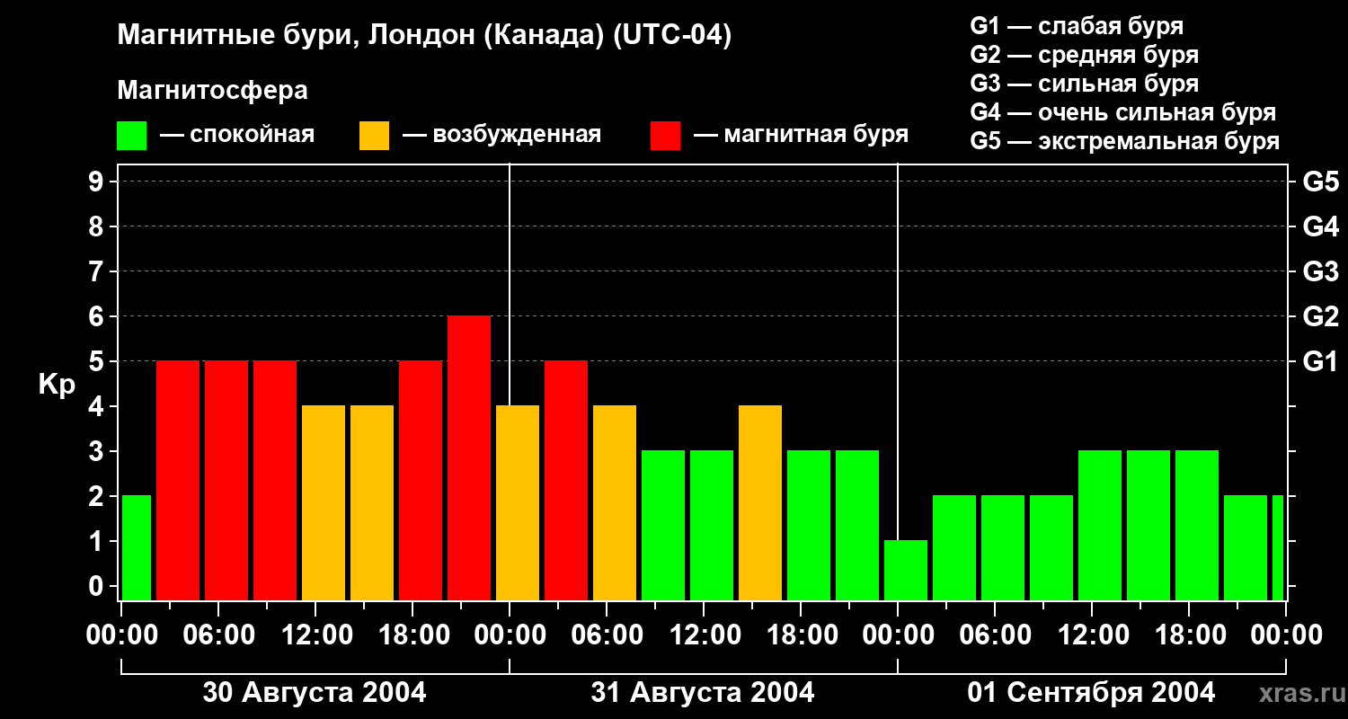 Магнитные бури Лондоне (Канада) — 1 сентября 2004 года