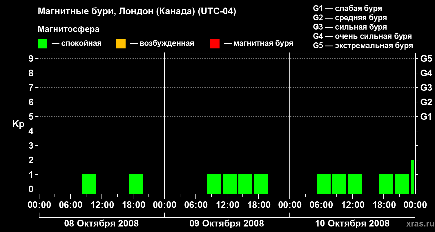 Магнитные бури Лондоне (Канада) — 10 октября 2008 года
