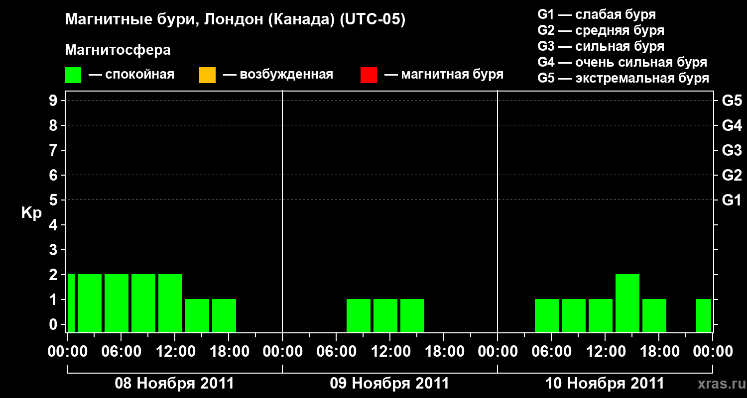 Магнитные бури Лондоне (Канада) в ноябре 2011 года