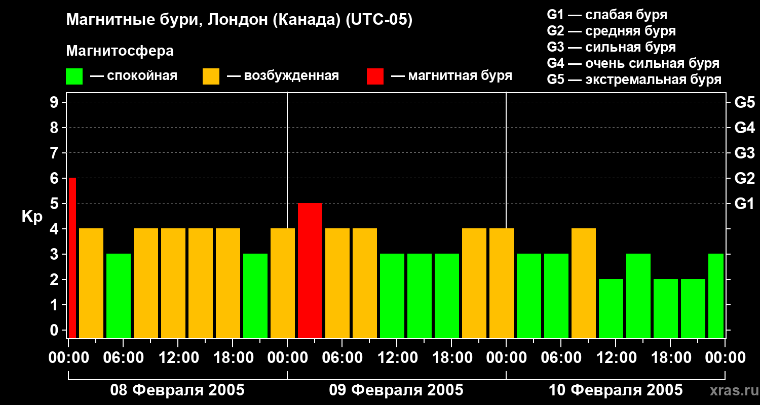 Магнитные бури Лондоне (Канада) в феврале 2005 года