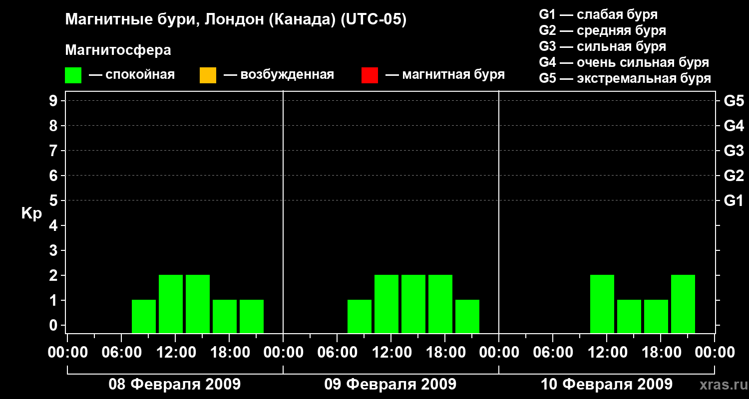 Магнитные бури Лондоне (Канада) в феврале 2009 года