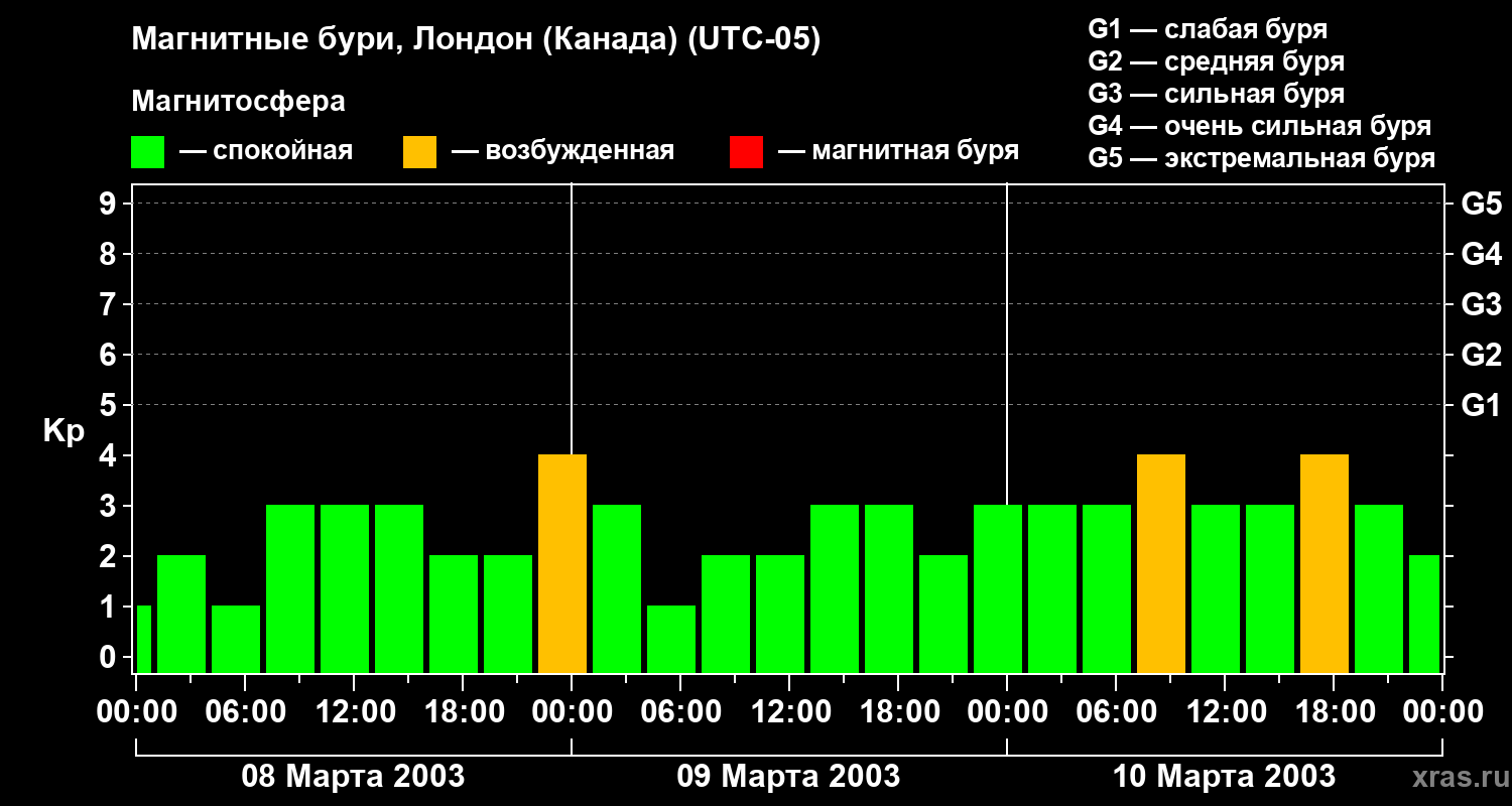 Магнитные бури Лондоне (Канада) — 10 марта 2003 года