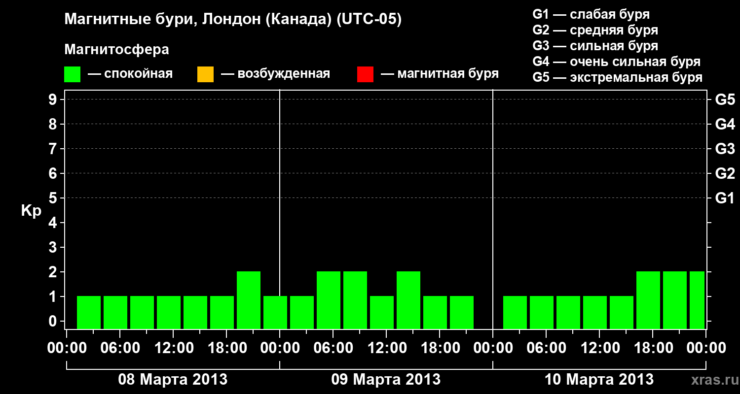 Магнитные бури Лондоне (Канада) 10 марта 2013 года