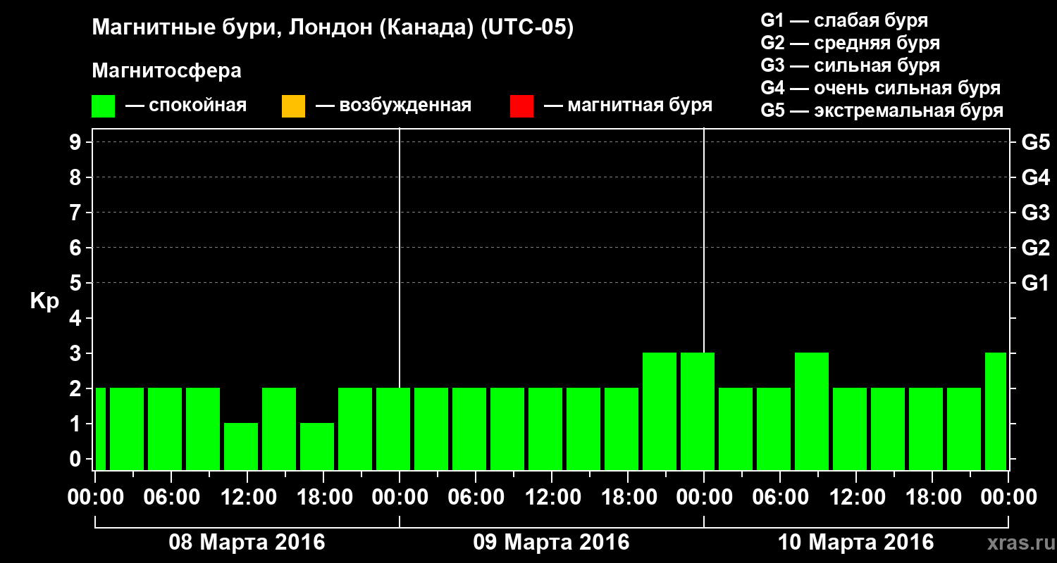 Магнитные бури Лондоне (Канада) 10 марта 2016 года