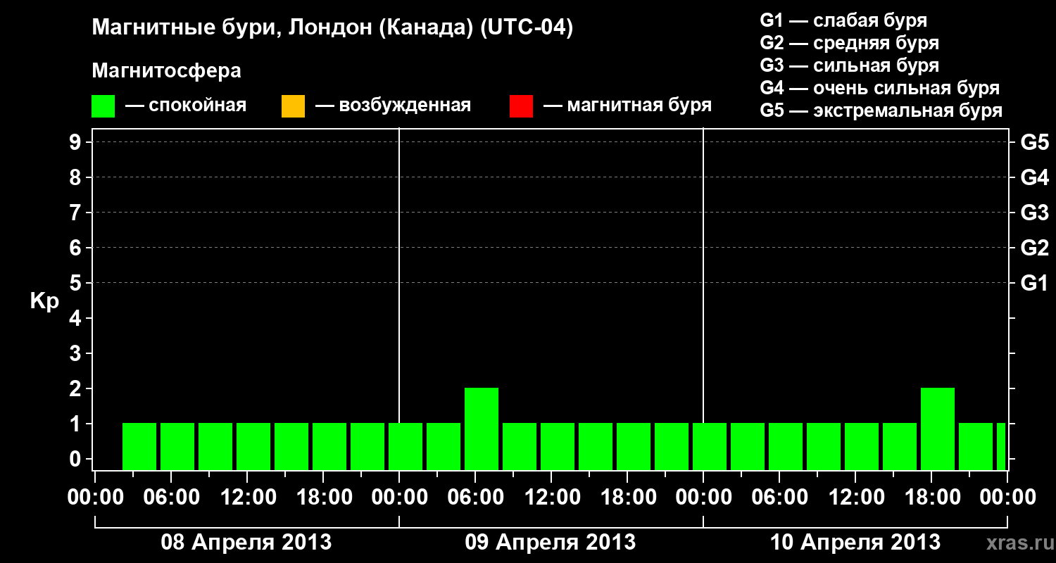 Магнитные бури Лондоне (Канада) 10 апреля 2013 года