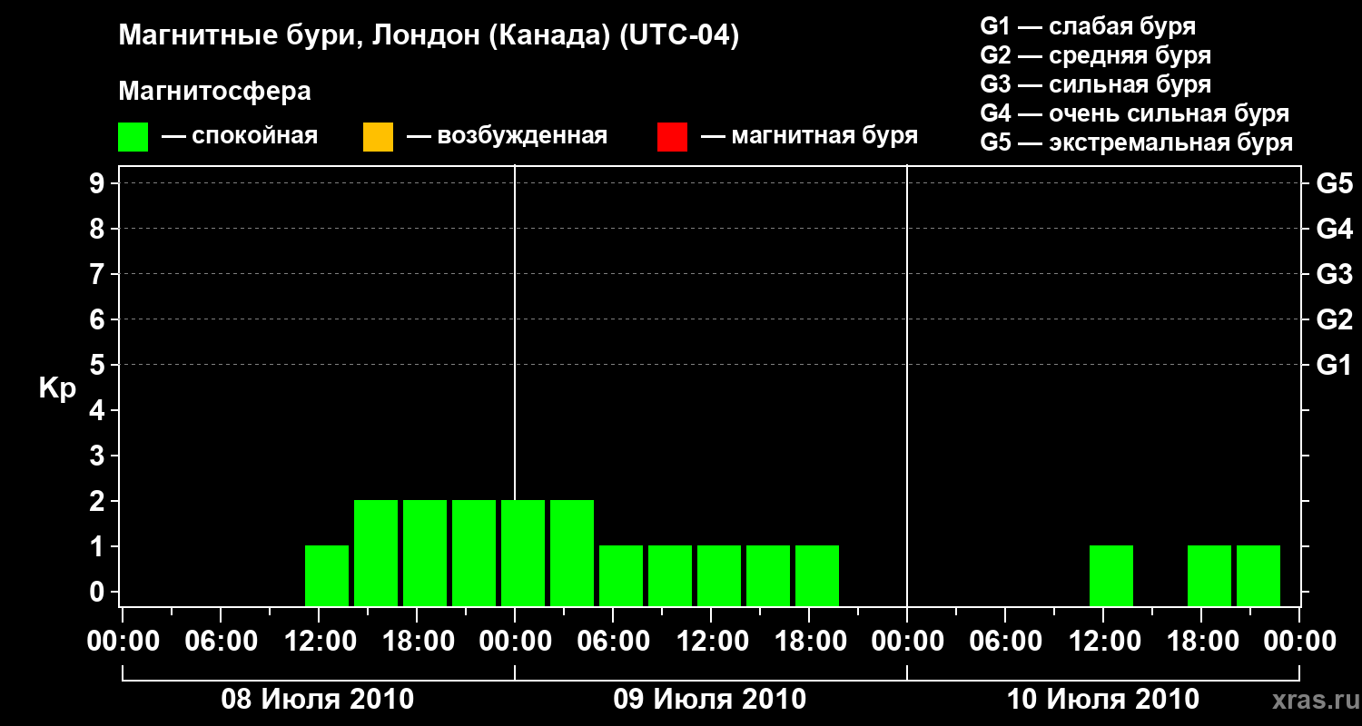 Магнитные бури Лондоне (Канада) 10 июля 2010 года