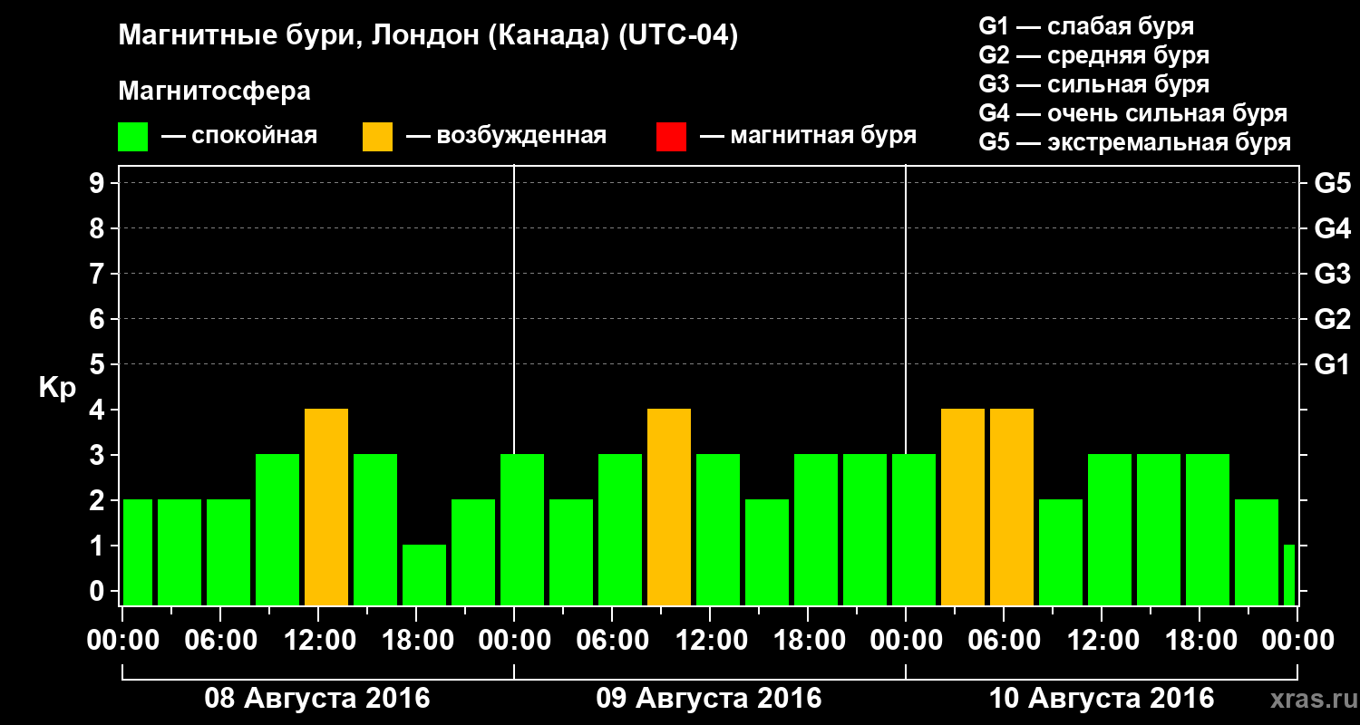 Магнитные бури Лондоне (Канада) 10 августа 2016 года