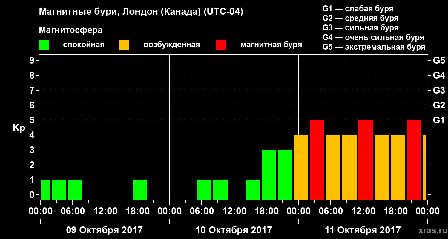 Магнитные бури Лондоне (Канада) — 11 октября 2017 года