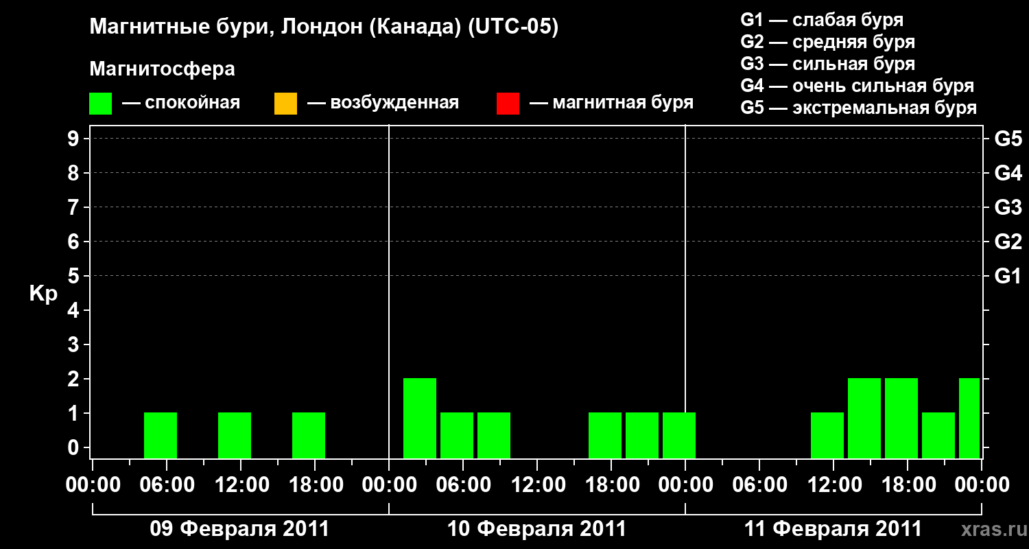 Магнитные бури Лондоне (Канада) 11 февраля 2011 года