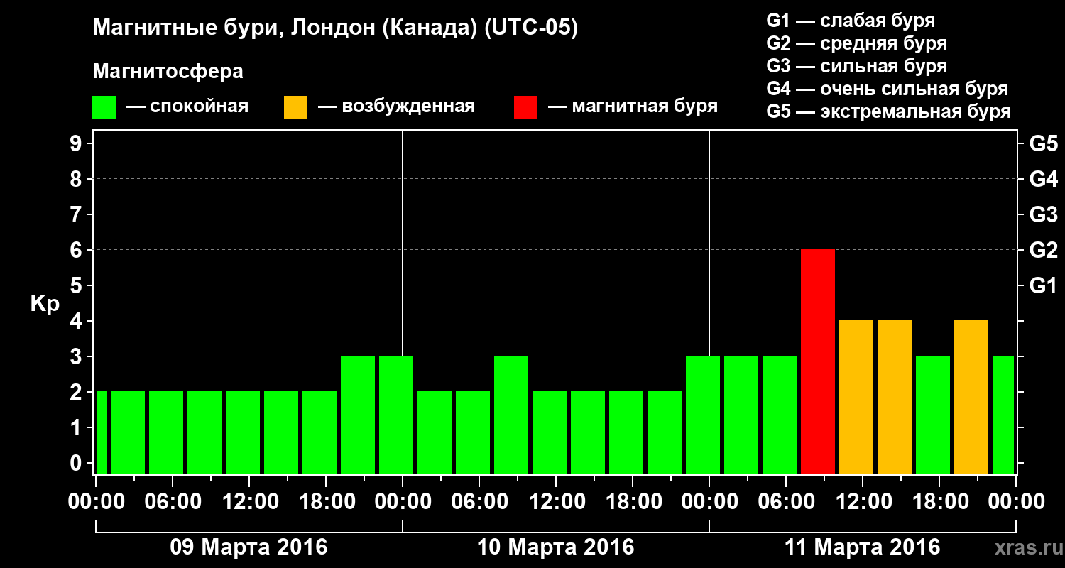 Магнитные бури Лондоне (Канада) 11 марта 2016 года