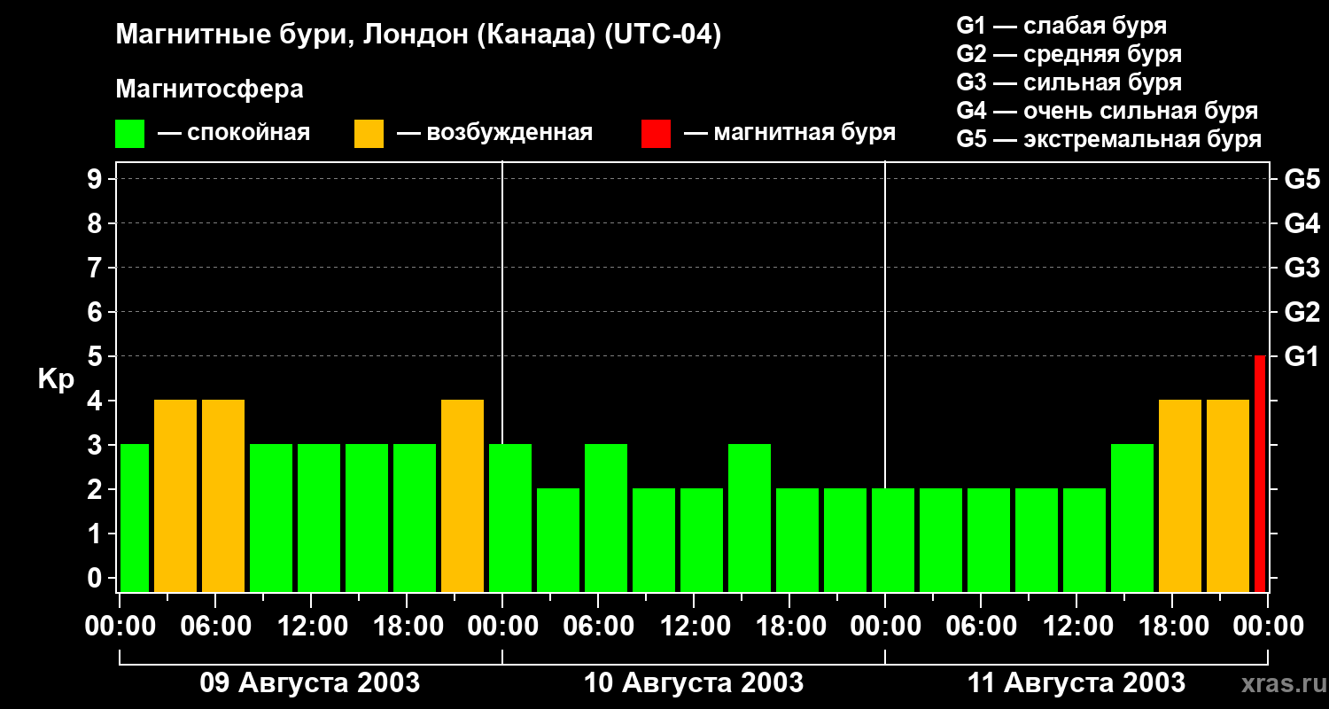 Магнитные бури Лондоне (Канада) — 11 августа 2003 года
