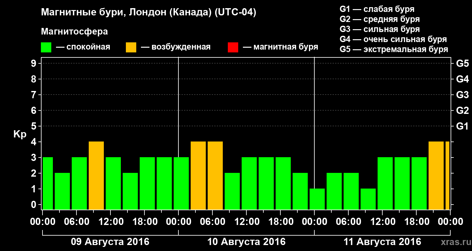 Магнитные бури Лондоне (Канада) 11 августа 2016 года