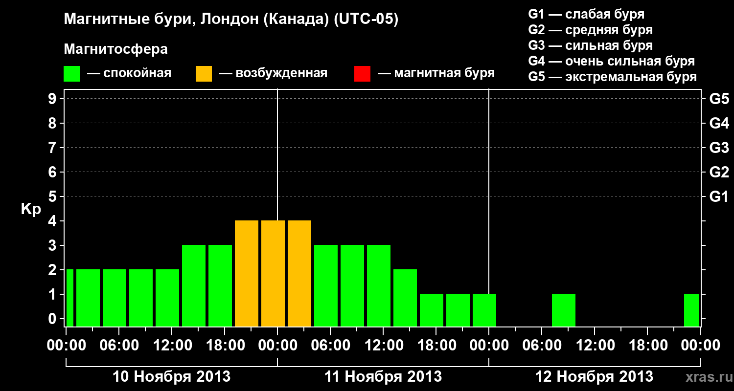 Магнитные бури Лондоне (Канада) в ноябре 2013 года