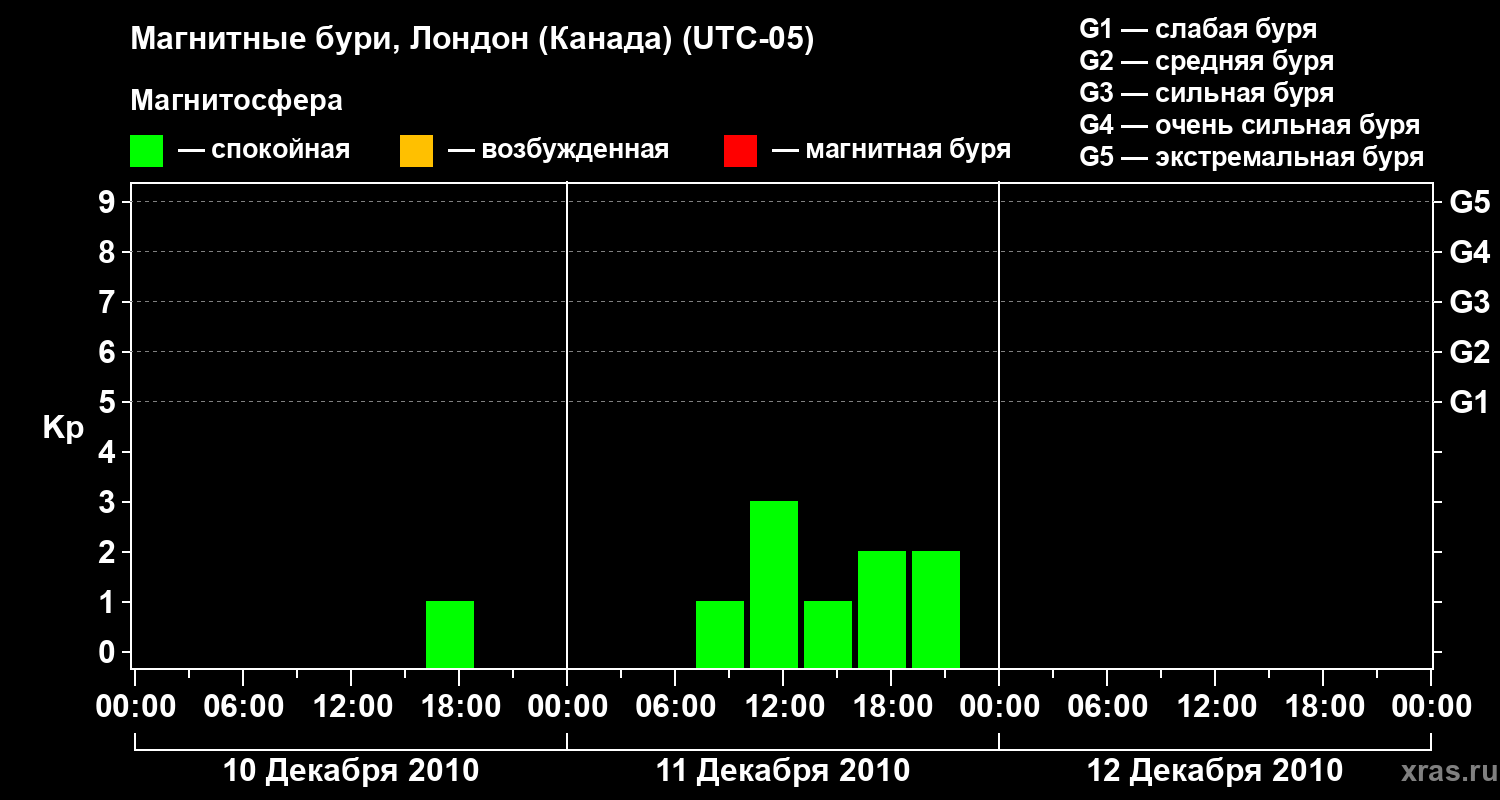 Магнитные бури Лондоне (Канада) в декабре 2010 года