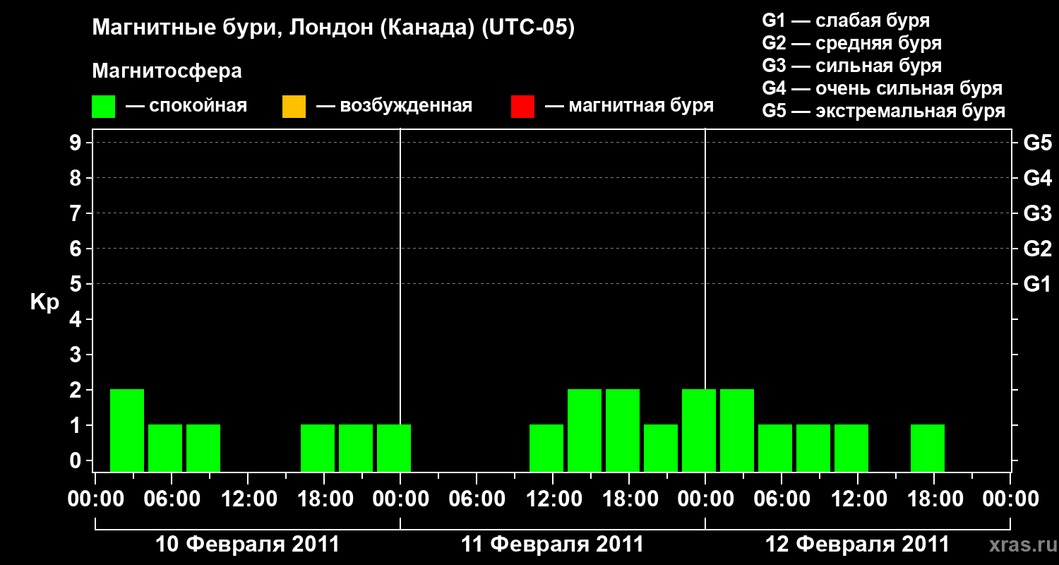 Магнитные бури Лондоне (Канада) 12 февраля 2011 года