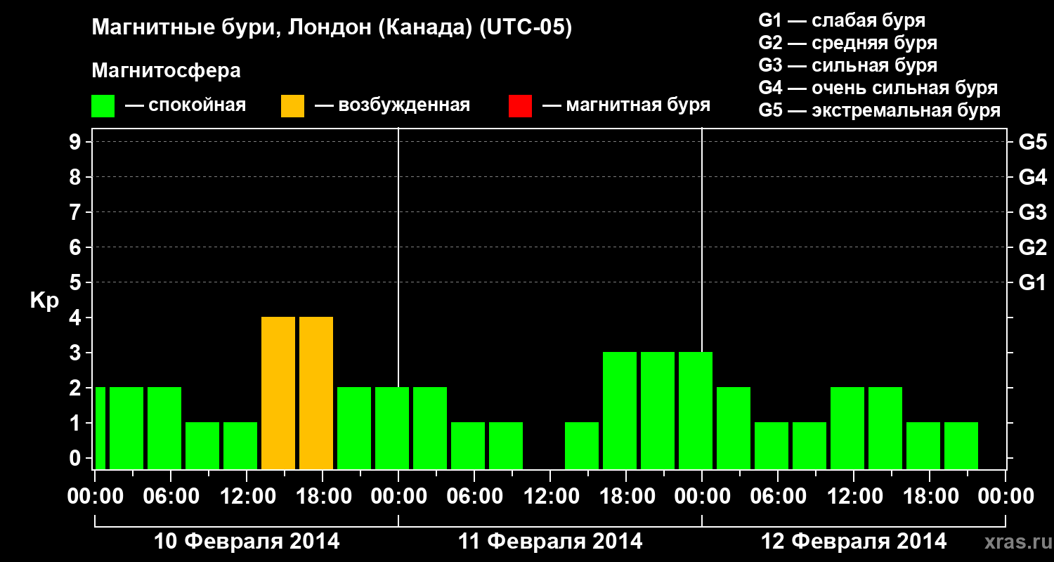 Магнитные бури Лондоне (Канада) в феврале 2014 года