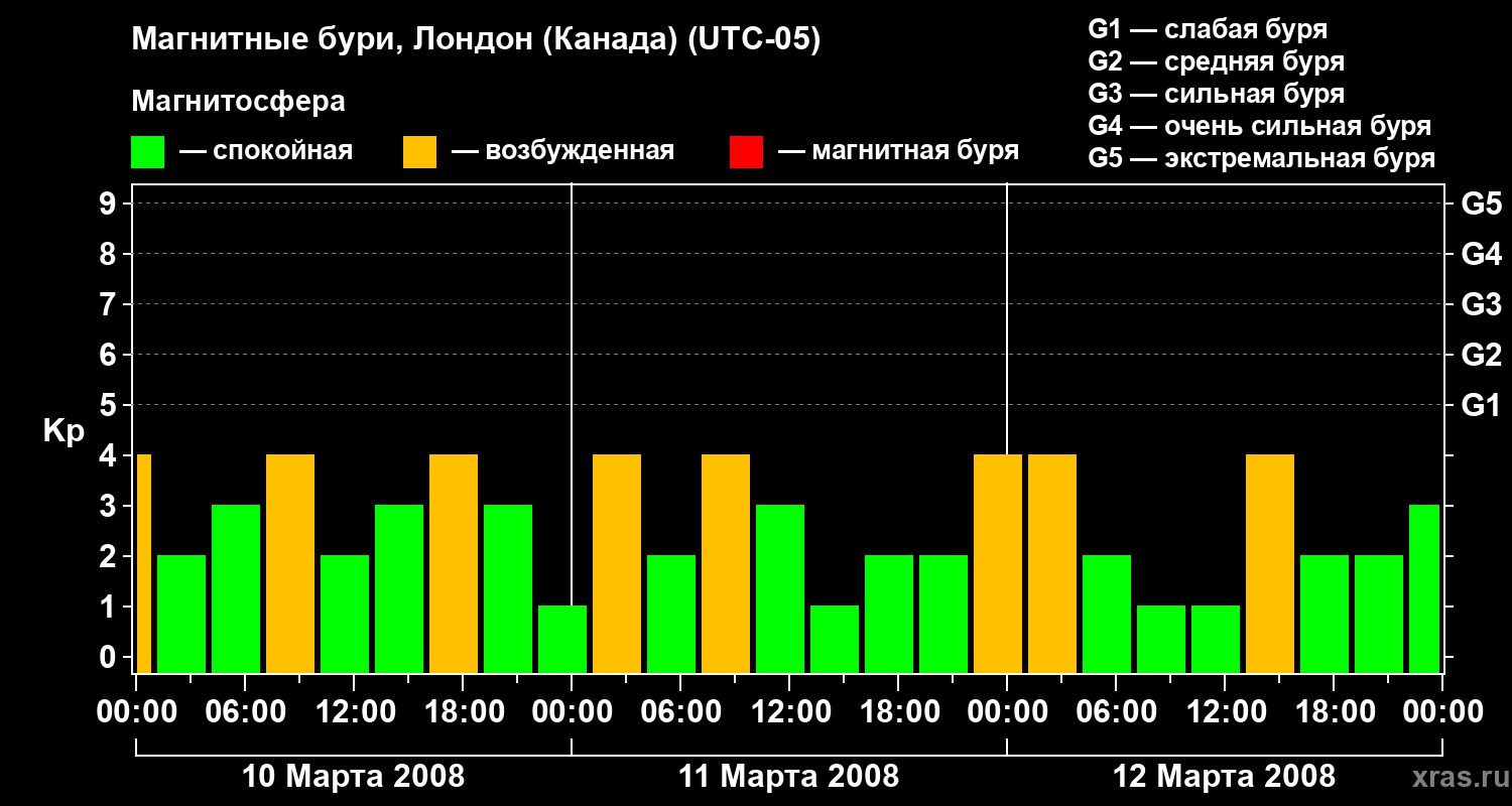 Магнитные бури Лондоне (Канада) — 12 марта 2008 года