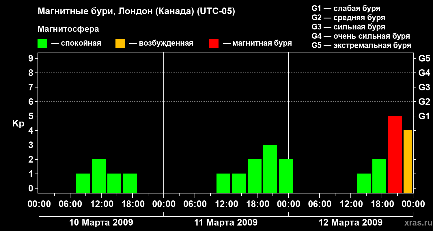Магнитные бури Лондоне (Канада) — 12 марта 2009 года