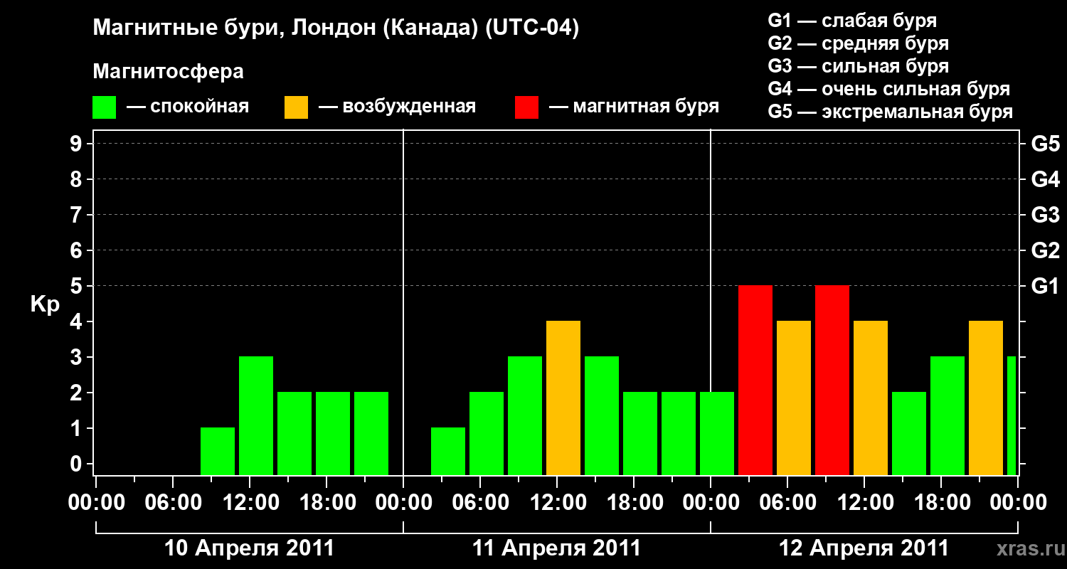 Магнитные бури Лондоне (Канада) 12 апреля 2011 года