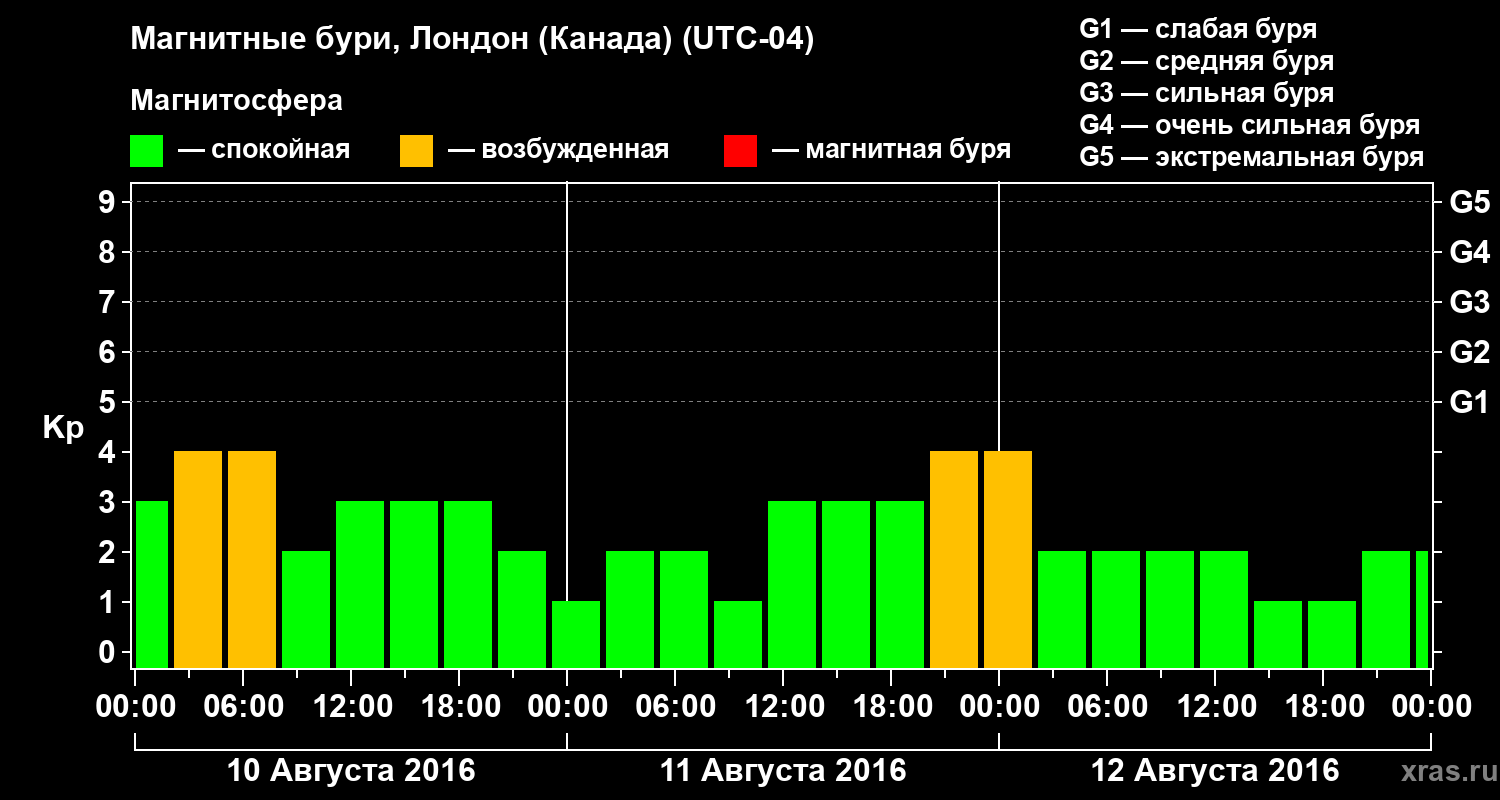 Магнитные бури Лондоне (Канада) 12 августа 2016 года