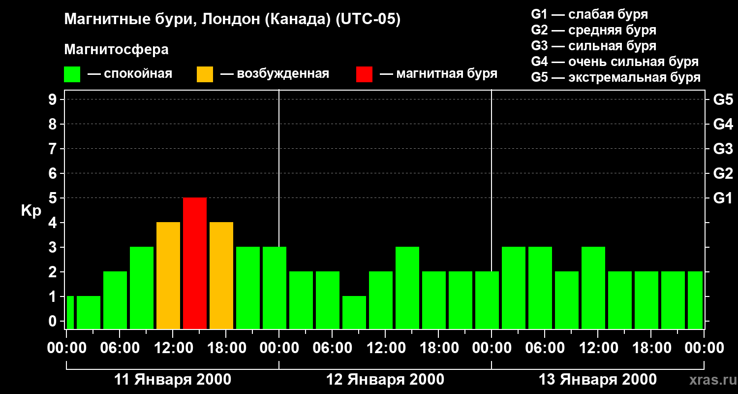 Магнитные бури Лондоне (Канада) — 13 января 2000 года