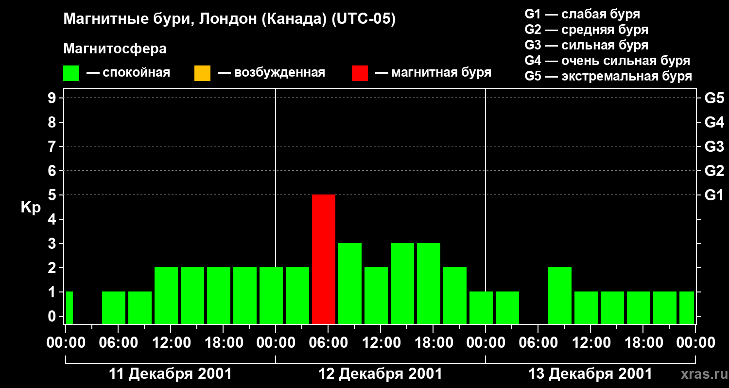 Магнитные бури Лондоне (Канада) — 13 декабря 2001 года