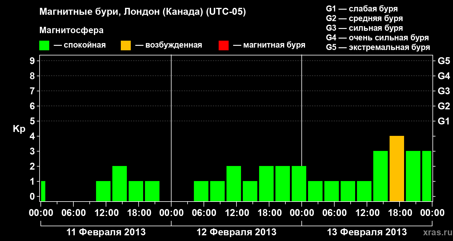 Магнитные бури Лондоне (Канада) в феврале 2013 года